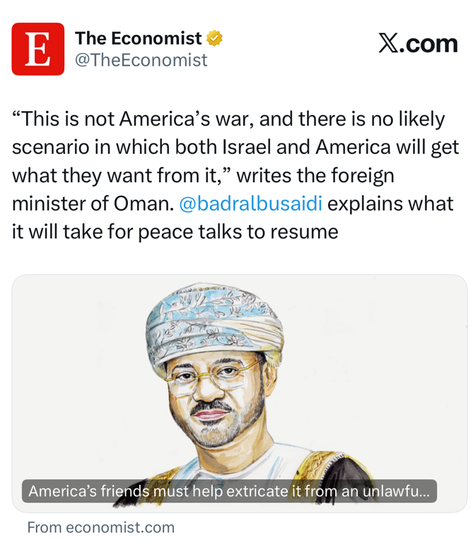 △阿曼外交大臣巴德尔在《经济学人》发表署名文章,引发关注