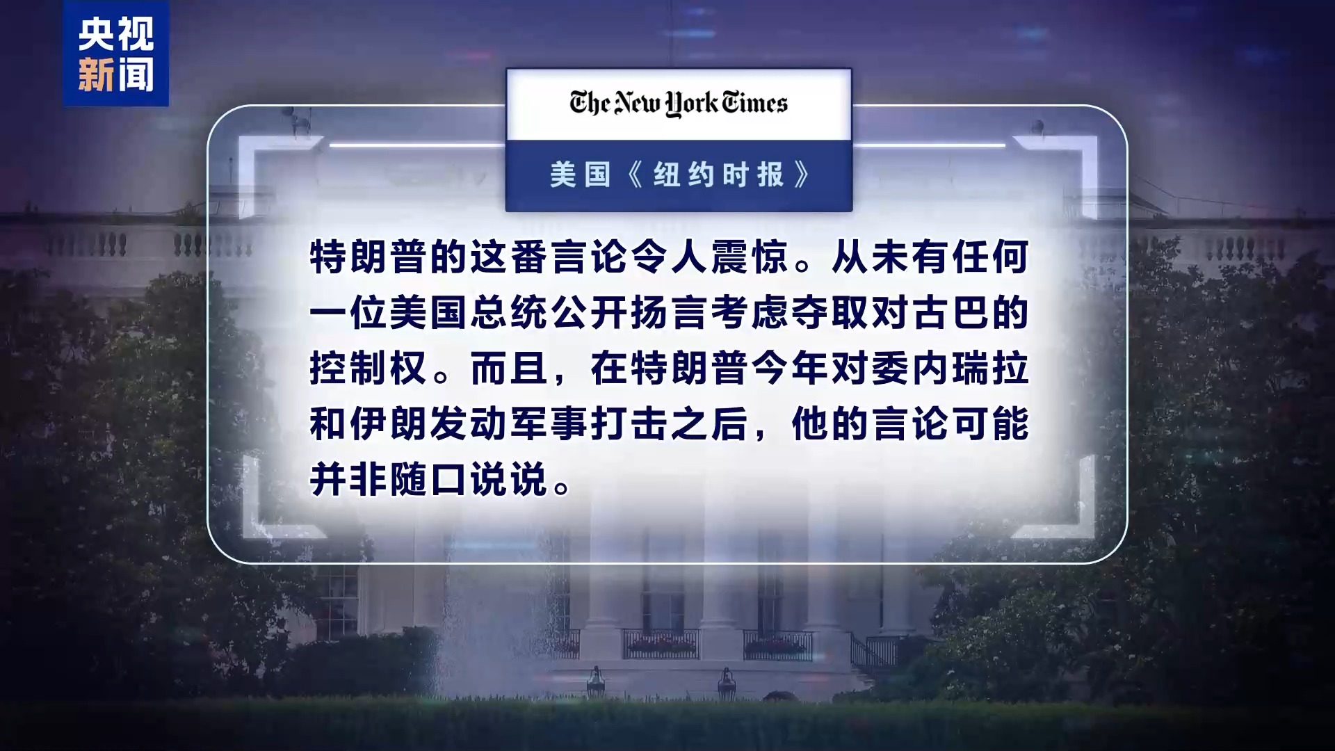 针对美国总统特朗普近日声称,将“以某种形式接管古巴”,美国方面17日有评论称,“特朗普的这番言论令人震惊。从未有任何一位美国总统公开扬言考虑夺取对古巴的控制权。而且,在特朗普今年对委内瑞拉和伊朗发动军事打击之后,他的言论可能并非随口说说。”评论称:“美国正在以经济和能源封锁制造人道主义危机,再以解除危机为筹码,逼迫古巴在政治上屈服。这不是外交,而是强权胁迫。”