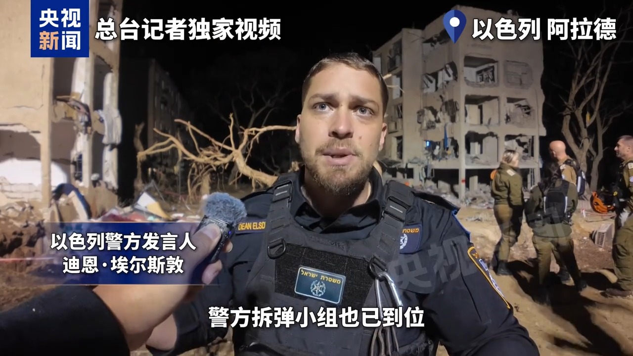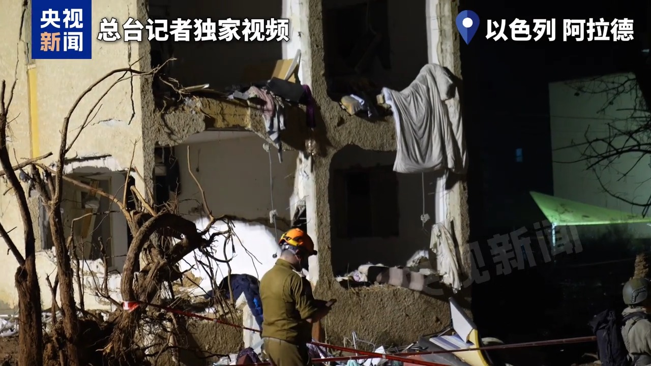 总台记者 梁慧:这片区域是阿拉德市中心的一片居民区,这些建筑都是居民楼。导弹来袭时,有部分民众已经躲进了附近的避难所,但也有一部分民众尚未进入避难所,仍留在这些建筑物里。因此(这次袭击)造成了严重的人员受伤。在爆炸发生之后,一度有部分民众被掩埋在废墟之下。救援人员正在进行非常仔细的搜索。