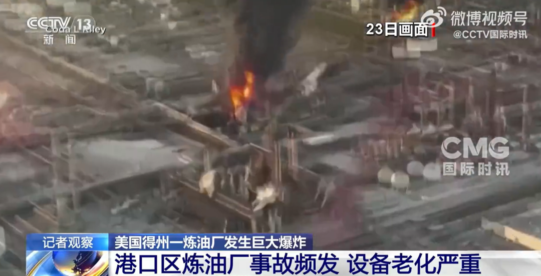 美国得州一炼油厂爆炸起火,画面曝光!当地多个炼油厂设备老化严重、锈迹斑斑