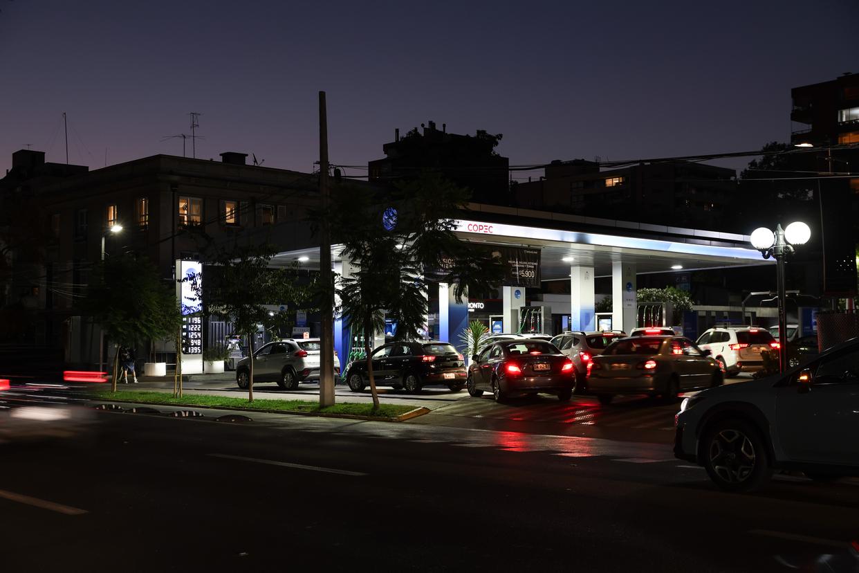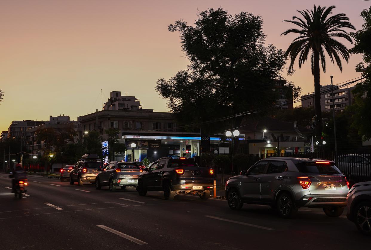 3月25日,油价上涨前夕,车辆在智利圣地亚哥一处加油站排队等待加油。新华社记者周佳谊 摄
