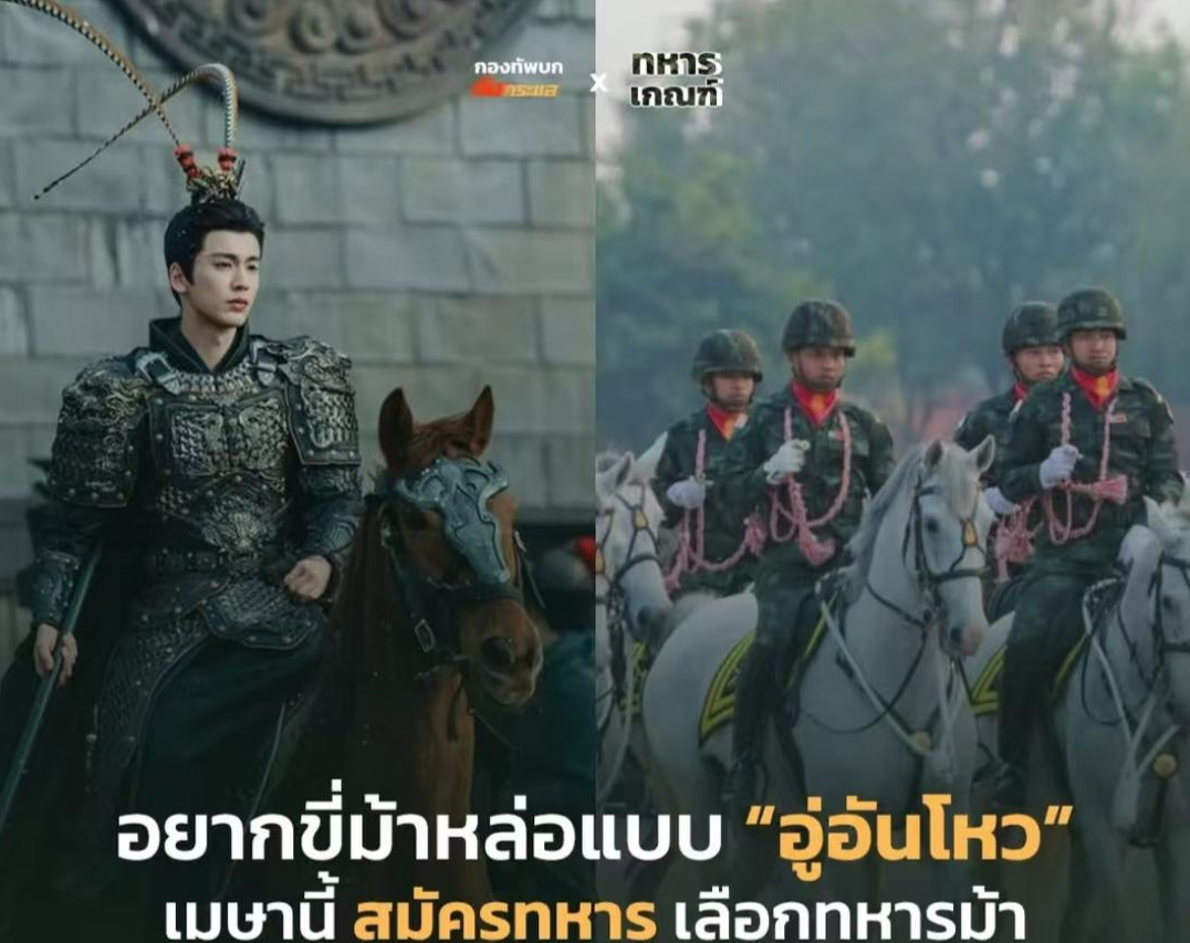 ▲泰国征兵海报上写着:想像“武安侯”一样帅气骑马吗?