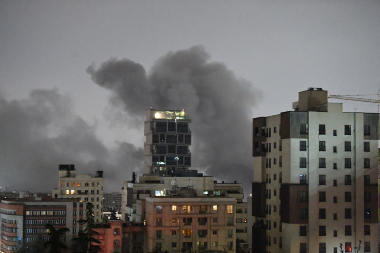 这是3月28日凌晨拍摄的伊朗德黑兰市区爆炸后的浓烟。新华社记者沙达提摄