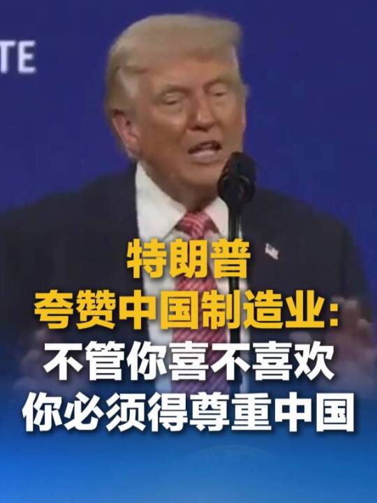 特朗普在说完“美国无疑是全球范围内最炙手可热的国家”后说道,“我不得不说,我非常尊重中国,你看看中国他们做得有多好,制造业多么发达。他们生产的汽车太多了,以至于举行了一场比赛看哪家造的车最少,因为他们的车实在太多了。你必须尊重中国的成就,不管你喜不喜欢,你都必须尊重中国。”