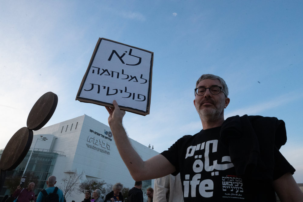3月28日,夜幕降临,以色列特拉维夫市中心的哈比玛广场,约千名以色列民众聚集于此,发出拒绝战争、呼吁和平的呼声。