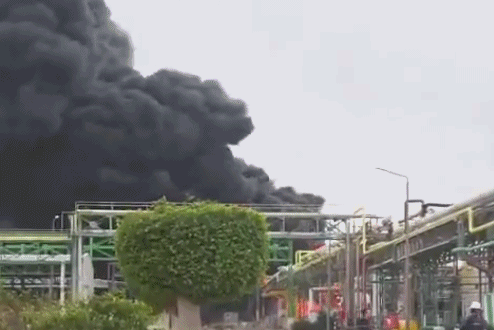 △以色列南部贝尔谢巴附近的尼奥特霍瓦夫工业区遭袭起火