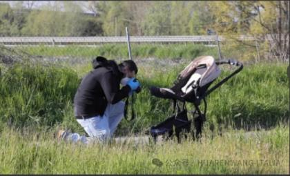 警方正在对现场被发现的婴儿车进行拍照取证