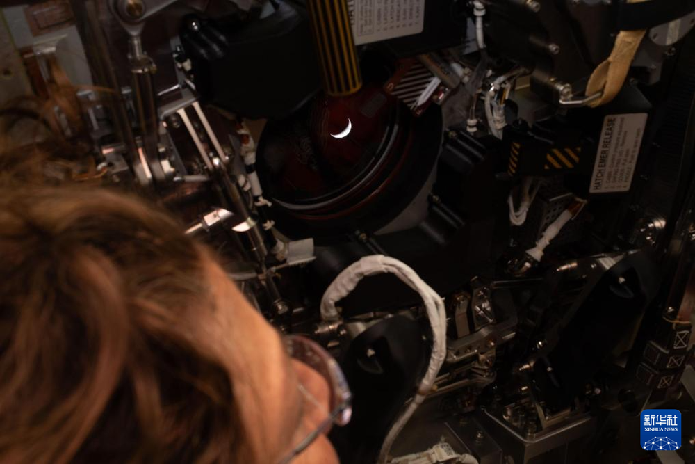 4月6日,美国航空航天局宇航员克里斯蒂娜·科克从执行“阿耳忒弥斯2号”载人绕月飞行任务的“猎户座”飞船上观看地球。新华社发(美国国家航空航天局供图)