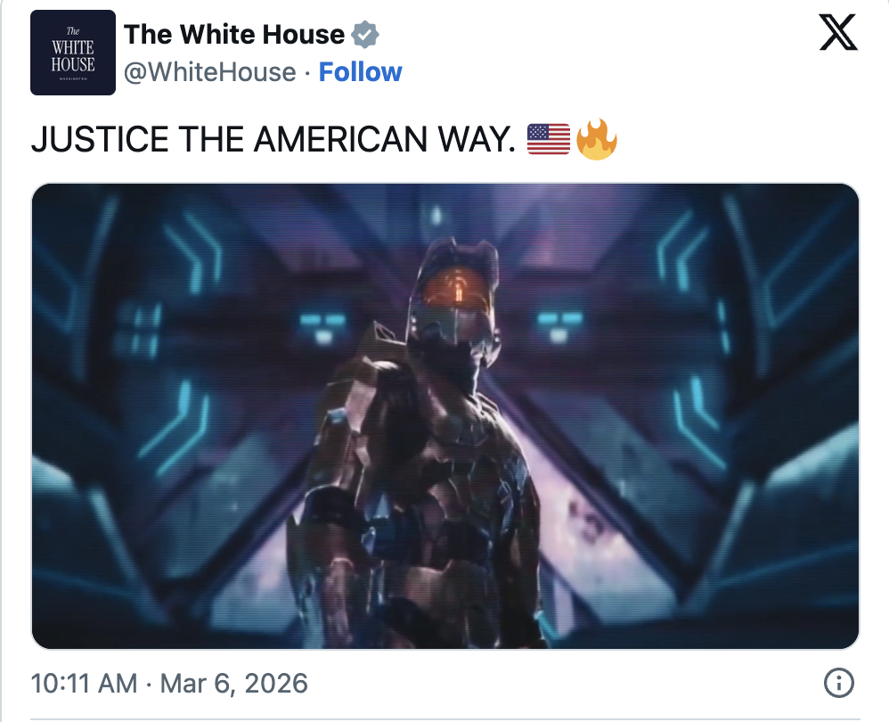事实上,美国在数字舆论宣传方面更是不加掩饰。白宫在X和TikTok上已发布了十几段“宣传视频”,将《使命召唤》的连杀奖励、《钢铁侠》、《壮志凌云》、《勇敢的心》和《海绵宝宝》的影像片段与真实的空袭画面叠加剪辑在一起,完全没有区分虚构与实战。其中一段现已删除的视频甚至在每次击中伊朗目标时都叠加了《使命召唤》的“+100”得分提示。
