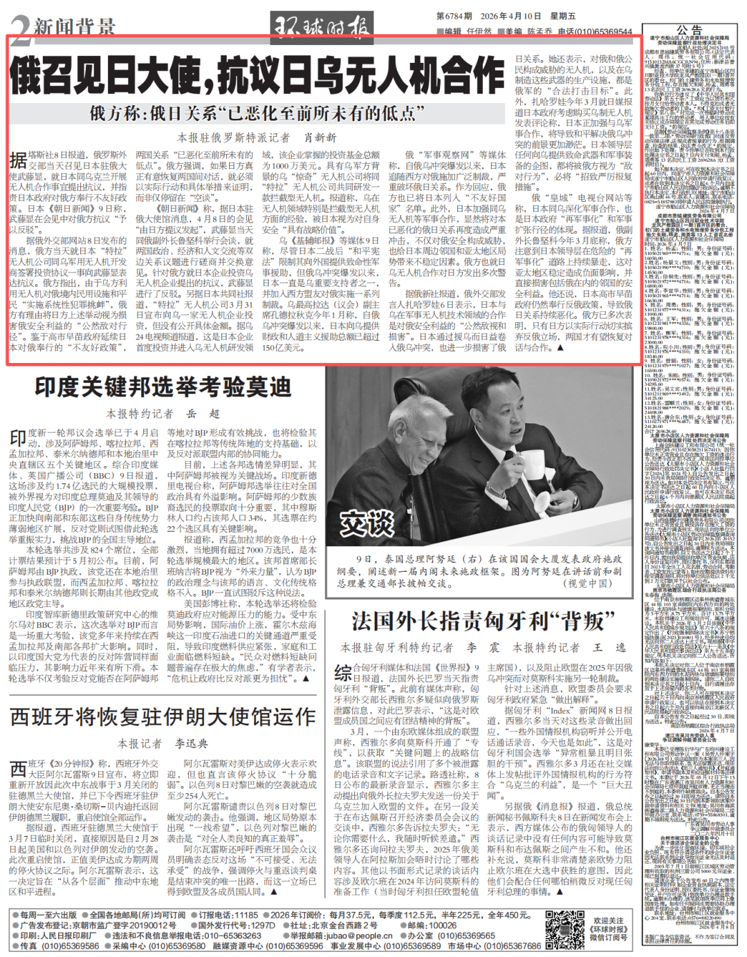 俄“皇城”电视台网站等称,日本同乌深化军事合作,也是日本政府“再军事化”和军事扩张行径的体现。据报道,俄副外长鲁坚科今年3月底称,俄方注意到日本领导层在危险的“再军事化”道路上持续暴走,这对亚太地区稳定造成负面影响,并直接损害包括俄在内的邻国的安全利益。他还说,日本高市早苗政府仍然奉行反俄政策,导致俄日关系持续恶化。俄方已多次表明,只有日方以实际行动切实摈弃反俄立场,两国才有望恢复对话与合作。