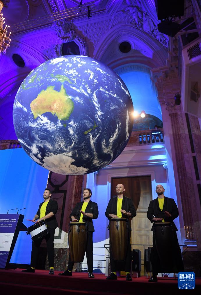 4月9日,人们在奥地利维也纳举行的维也纳国际能源与气候论坛开幕式上表演。新华社记者 贺灿铃 摄