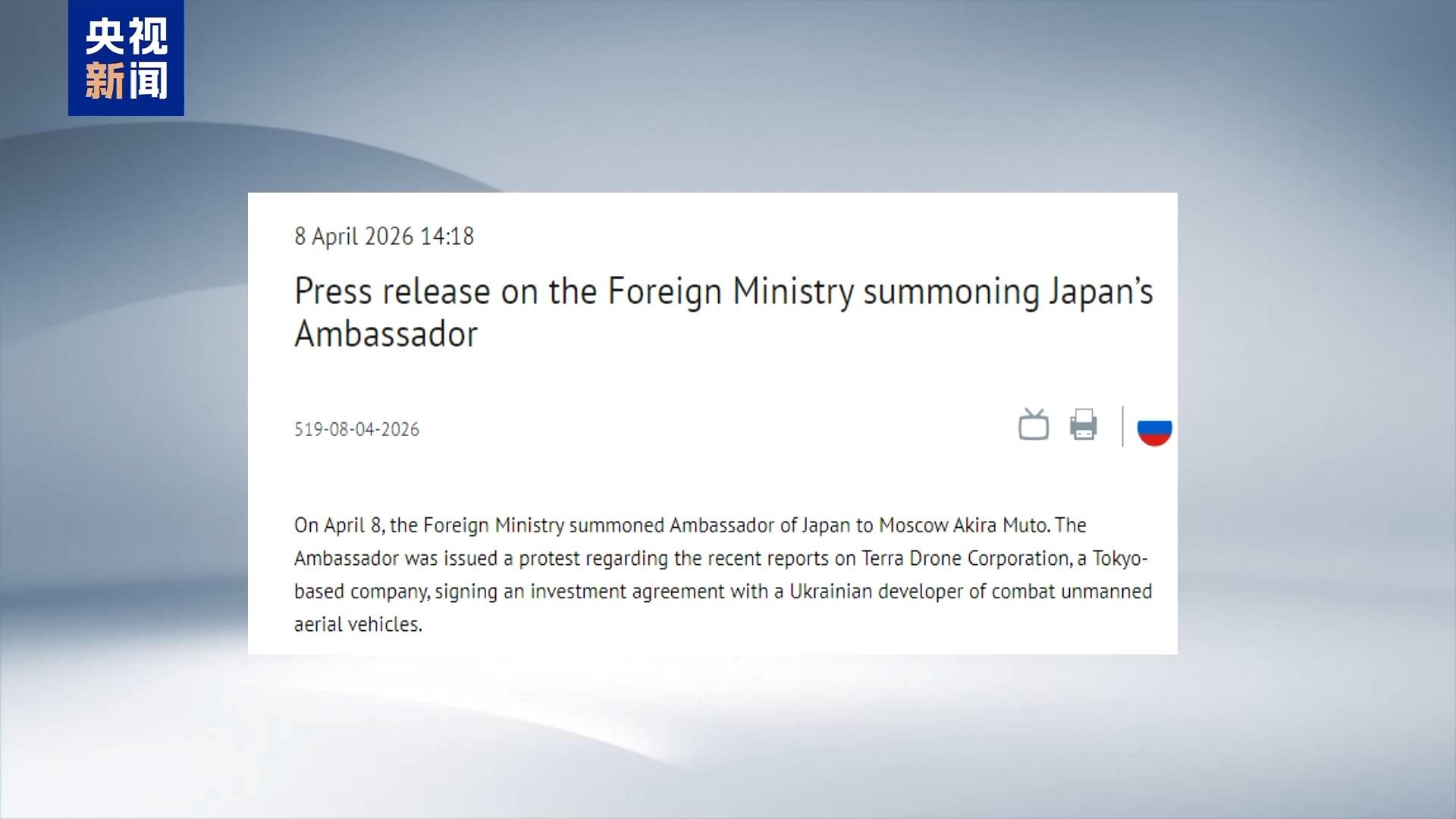 俄罗斯外交部8日说,俄方召见了日本驻俄罗斯大使武藤显,就一家日本企业向乌克兰无人机公司投资提出抗议,指责日本政府对俄方奉行不友好政策。