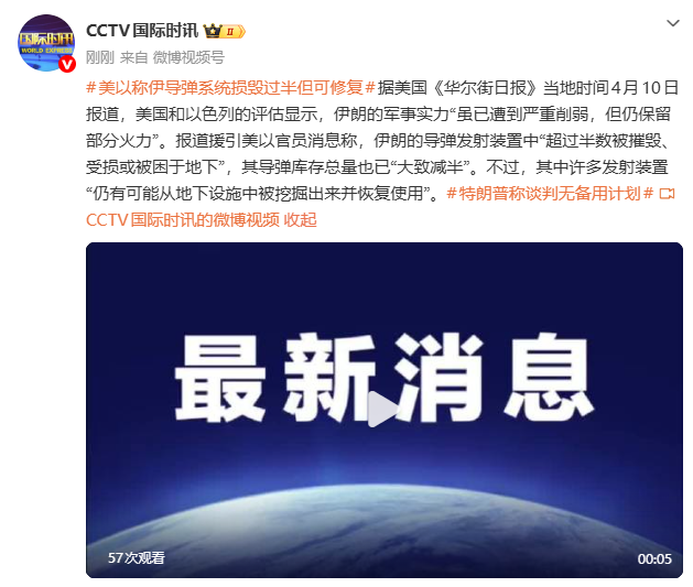 据美国《华尔街日报》当地时间4月10日报道,美国和以色列的评估显示,伊朗的军事实力“虽已遭到严重削弱,但仍保留部分火力”。