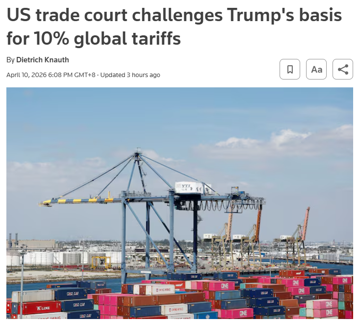4月10日,美国国际贸易法院就24个以民主党为主导的州以及小企业团体提起的诉讼举行了听证会。这些诉讼均对特朗普政府今年2月24日起生效的基于“122条款”加征新关税的合法性提出质疑,认为“巨额贸易逆差”可能不足以成为实施关税的理由。