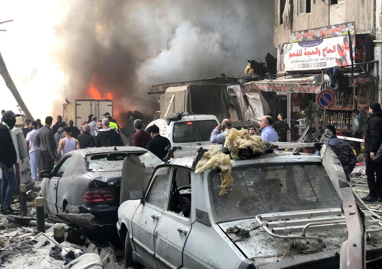 4月8日,在黎巴嫩首都贝鲁特,以色列发动的空袭导致汽车和建筑被毁(手机照片)。以色列国防军当日称,以军对黎巴嫩真主党实施本次美以伊冲突开始以来“最大规模打击”。新华社发(比拉尔·贾维希摄)