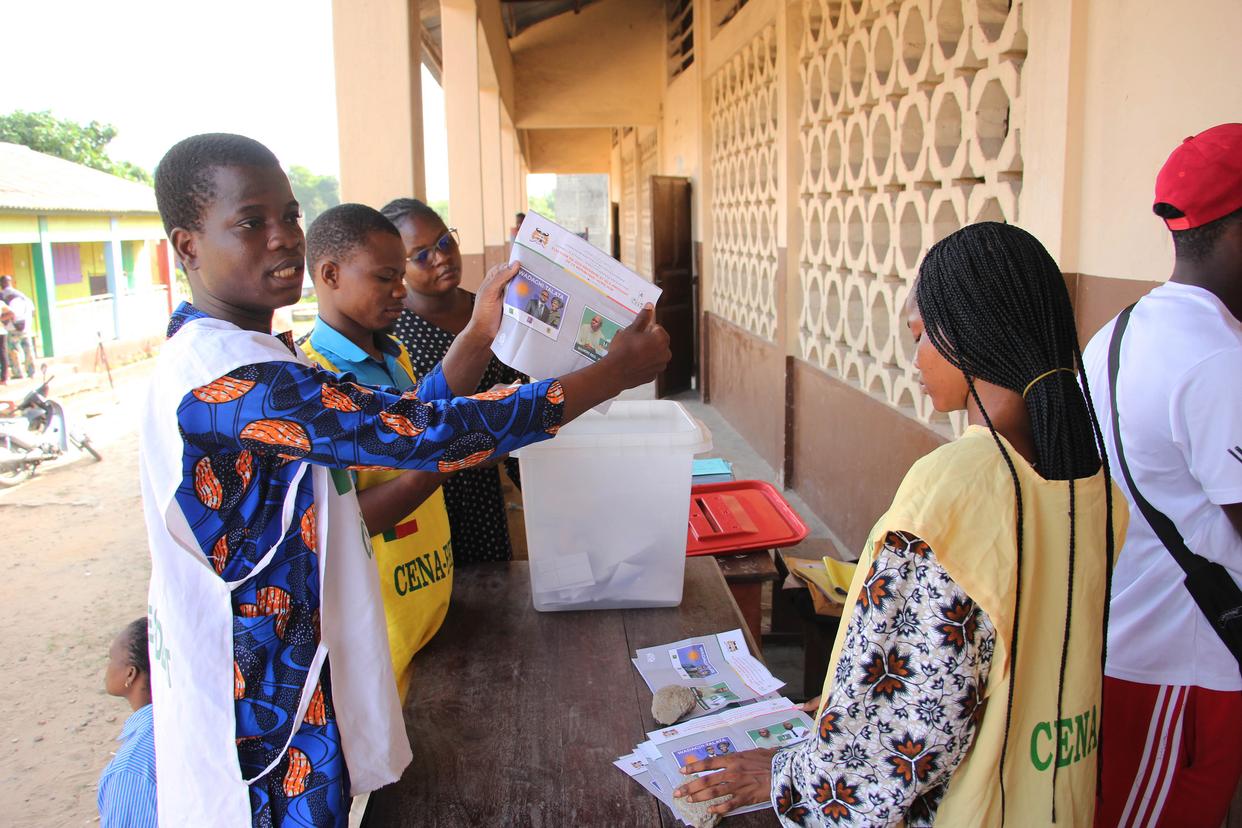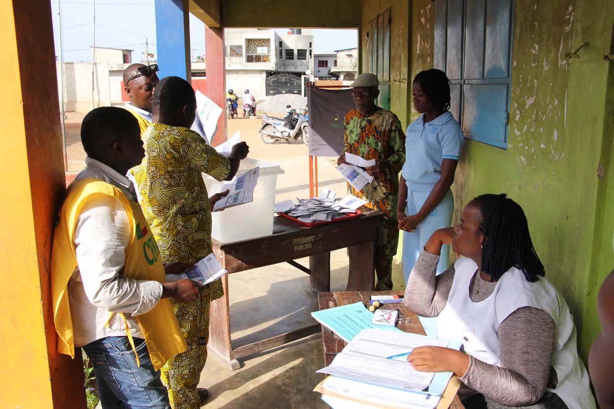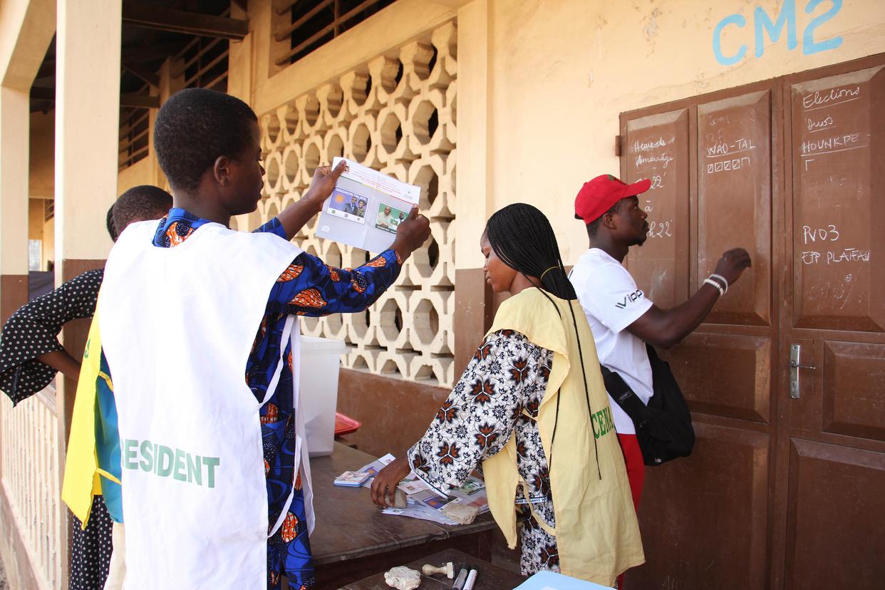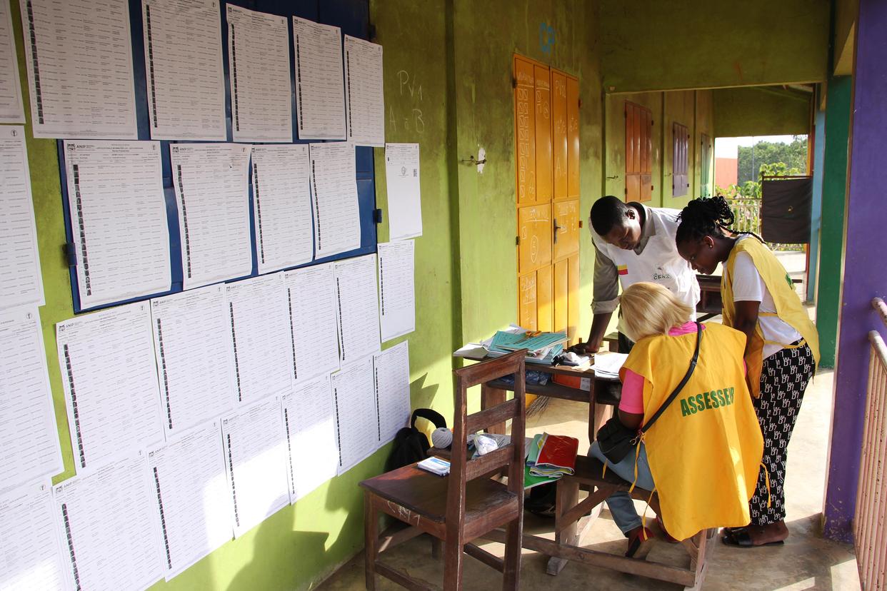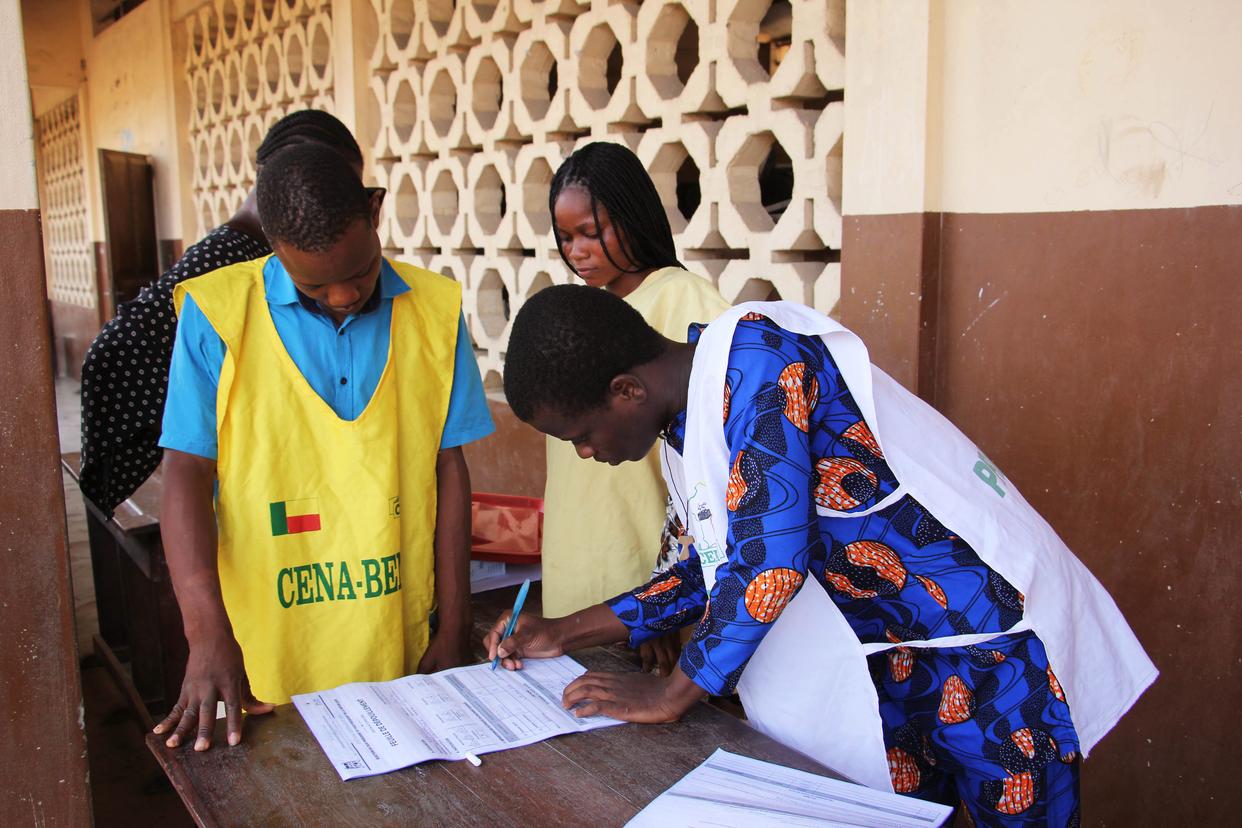 4月12日,工作人员在贝宁科托努的一处投票站统计选票。新华社发(塞拉芬摄)