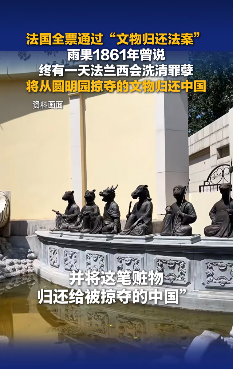 法国议员热雷米·帕特里耶-莱图斯13日在社交媒体发布自己发言的视频,提到法国文豪雨果著名的梦想,称正如雨果1861年曾说,终有一天,法兰西会清洗罪孽,将从圆明园掠夺的文物归还给中国。