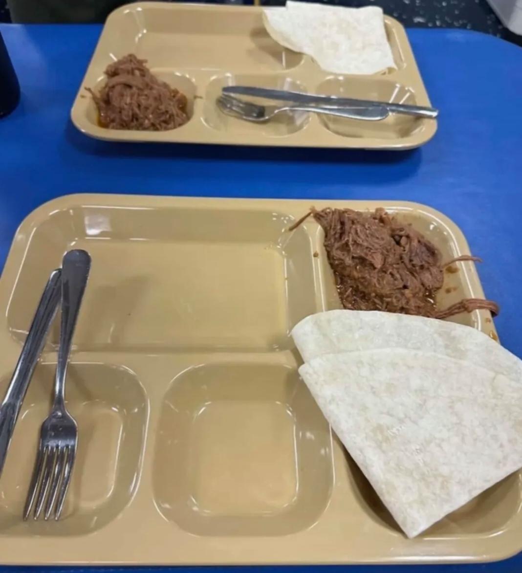 网络流传的疑似美军舰员拍摄的餐盘照片。