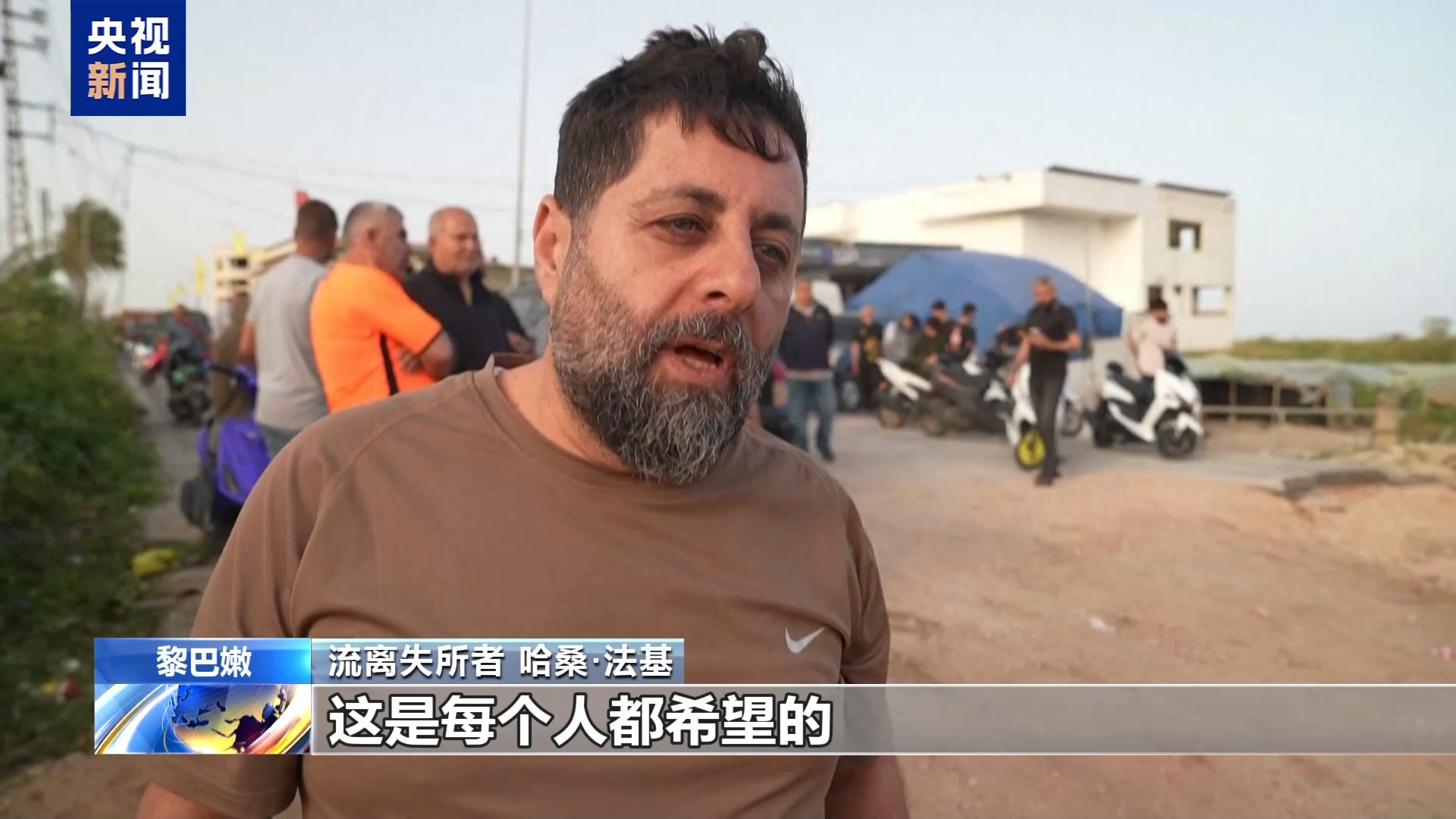 流离失所者 易卜拉欣·苏韦迪:他们说要停火10天,但我们不能接受。10天?如果我们回家了,10天之后战争又开始了怎么办?我们不希望那样,要么把我们的土地全部还回来,要么我们就不想要停火,我们将继续战争。我在贝鲁特南郊代希耶的家已被毁了,谁来赔偿我,我要继续待在这儿。