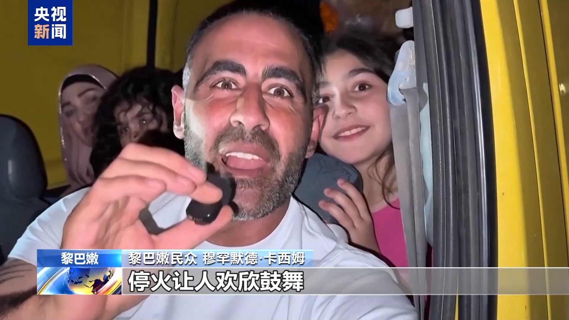 当天凌晨,贝鲁特的夜空升起烟花,庆祝的枪声在多个街区回荡。在黎巴嫩南部的西顿,很多居民走上街头庆祝,向迫不及待踏上回家之路的人们挥手致意。