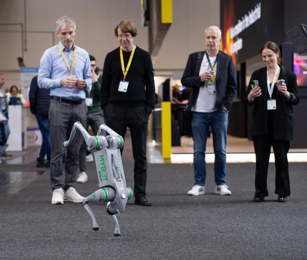 4月20日,人们在德国汉诺威工业博览会观看机械狗表演。新华社记者 张豪夫 摄