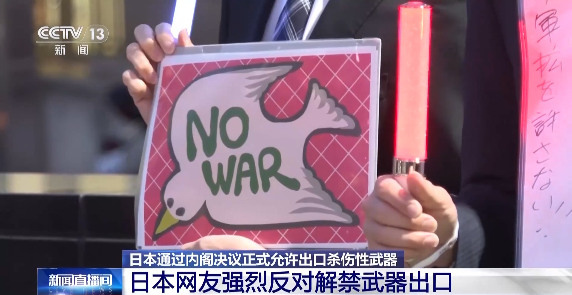 总台记者 李卫兵:在社交媒体上,日本网友也表达了对日本解禁武器出口的强烈反对,有网友称,“通过杀人来赚钱的日本还有什么夸耀可言,绝不能容忍。不能允许不通过国会肆意作出这样的决定”“杀伤性武器出口问题相当于修宪级别的‘国策’变更”。有网友发出疑问,目前这是以内阁会议方式决定的,至少也需要在国会进行审议,这个决策过程难道没有问题吗?