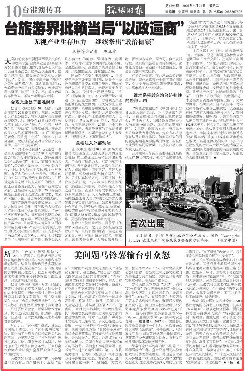 所谓的“台美对等贸易协议”(ART)签署后,民进党当局大张旗鼓地吹捧台湾获得15%的优惠税率及最惠待遇,结果却是默默开放多项长年禁止的美国问题农畜产品,含有瘦肉精的美牛内脏获准进入,就连带有神经毒素龙葵素的发芽马铃薯竟也可销至台湾,引发岛内强烈愤慨。