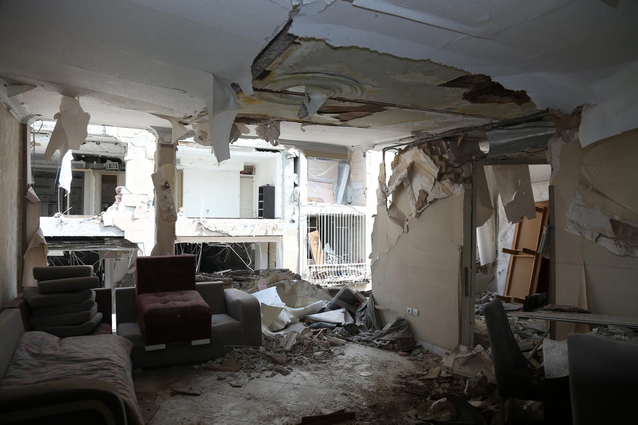 这是4月20日在伊朗首都德黑兰拍摄的一处在美以袭击中被损毁的建筑内部。新华社记者 沙达提 摄