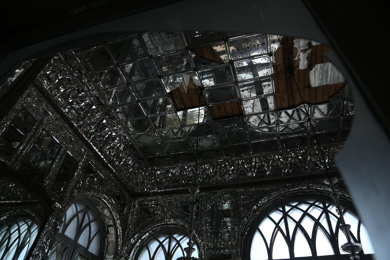这是4月20日在伊朗首都德黑兰拍摄的在美以袭击中受损的古莱斯坦宫内部。古莱斯坦宫又称“玫瑰宫”,是伊朗重要的王宫建筑群之一,2013年被联合国教科文组织列入世界遗产名录。新华社记者 沙达提 摄