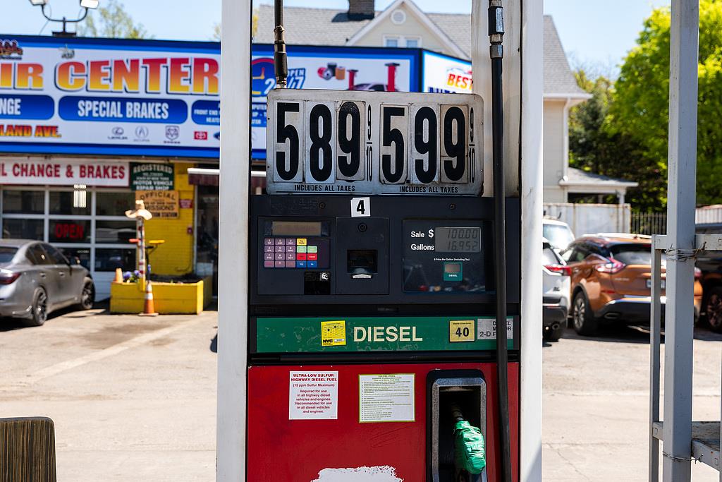 △当地时间4月21日,美国纽约市布鲁克林一家加油站显示油价