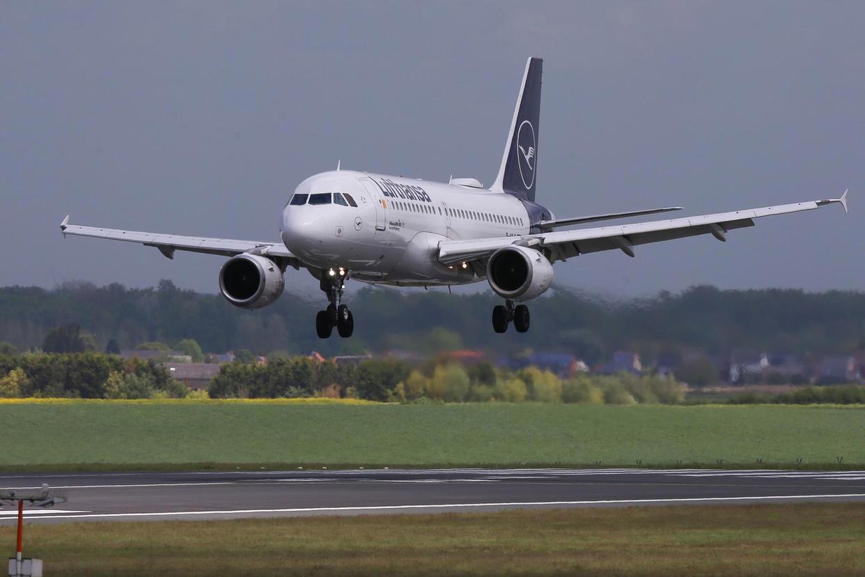 2021年5月21日,汉莎航空的一架航班准备在比利时布鲁塞尔机场降落。新华社记者郑焕松摄