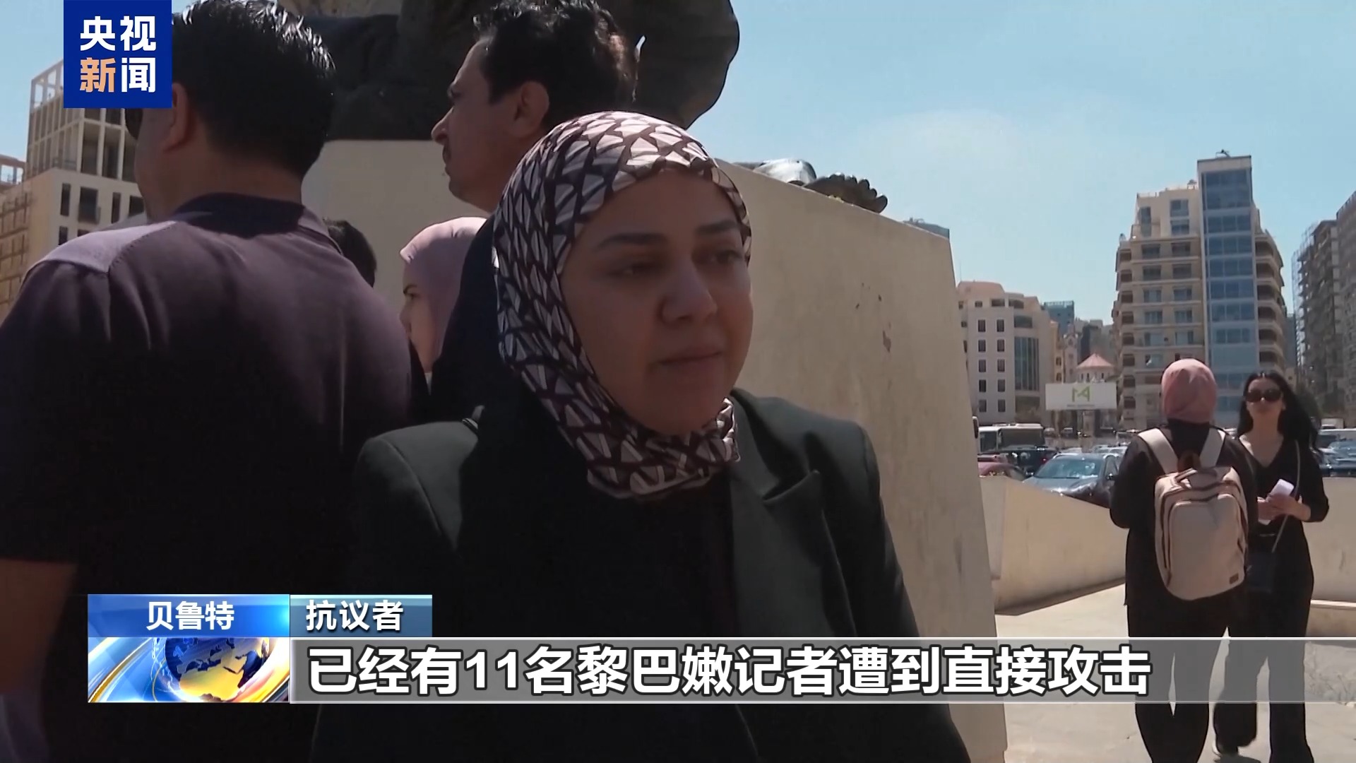 抗议者:这不是我们第一次举行抗议活动,自2023年新一轮黎以冲突爆发以来,已经有11名黎巴嫩记者遭到直接攻击。我们黎巴嫩记者工会呼吁黎巴嫩政府记录下针对记者的战争罪行,并启动刑事诉讼程序,追究以色列的责任。