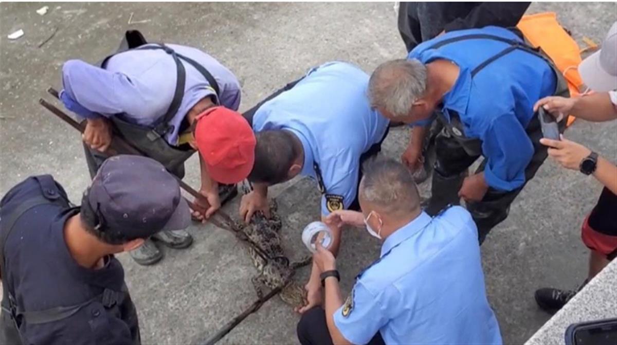 这条亚成体暹罗鳄终于落网了。9月19日,市民发现它在黄浦江晒太阳时,着实把人吓了一跳。为了抓捕它,花费了大量的人力和物力,多个部门连续6天对黄浦江沿岸开展“地毯式”水陆搜寻,累计动用12艘公安艇、30辆警车、144名警力。搜寻期间发现过它两次,但都抓捕失败。