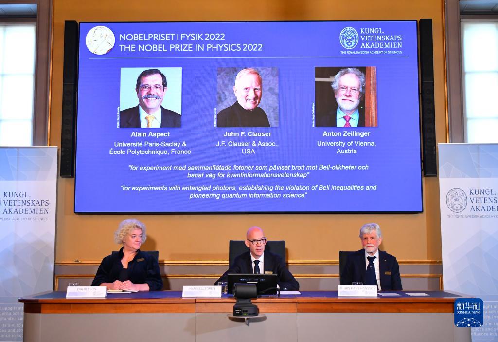 ▲2022年诺贝尔物理学奖得主。图/诺贝尔奖委员会官网 据新华社报道,瑞典皇家科学院10月4日宣布,将2022年诺贝尔物理学奖授予法国科学家阿兰·阿斯佩、美国科学家约翰·克劳泽和奥地利科学家安东·蔡林格,以表彰他们在“纠缠光子实验、验证违反贝尔不等式和开创量子信息科学”方面所做出的贡献。对于一般人来说,量子科学和量子纠缠是极为高端的理论,绝大部分人都不可能懂得和理解。对此,瑞典皇家科学院的解释也尽量通俗化,简要描述了阿斯佩、克劳泽和蔡林格的研究成果。他们三人各自使用纠缠量子态进行了开创性实验,其中两个粒子即使在分离时也表现得像一个单元。他们的结果为基于量子信息的新技术扫清了道路。什么是量子纠缠? 量子力学有不可言喻的巨大影响,并且开始得到应用。量子力学的应用领域并非以前认为的是非常尖端和有很大的局限性,而是有宽广的研究和利用领域,包括量子计算机、量子网络和安全的量子加密通信。量子力学应用和发展的一个关键因素是,如何允许两个或多个粒子以所谓的“纠缠态”存在。“纠缠态”中的一个粒子发生的事情,会决定另一个粒子发生的事情,即使它们相距很远。显然,瑞典皇家科学院的解释也没有办法让太多的人弄懂,因此,可以再降维一些来解释,并结合量子通信来理解。所谓量子是指能表现出某物质或物理量特性的最小单元。一个物理量如果存在最小的不可分割的基本单位,这个物理量是量子化的,并把最小单位称为量子。粒子又是指能够以自由状态存在的最小物质组成部分。因此,物理学上把由两个或两个以上粒子组成系统中相互影响的现象称为量子纠缠。爱因斯坦将量子纠缠称为“幽灵般超距作用”(鬼魂似的远距离相互操作作用),而且,爱因斯坦在注意到纠缠量子态令人费解的性质后,怀疑量子力学不是一个完整的理论。通俗地讲,量子纠缠就是最小的物质,如粒子(光子)、原子之间的接触、叠加、缠绕,好似信息传递和交流的混沌状态,正因为有这样的交流,可以让量子通信、量子计算机、量子互联网得以实现。然而,信息的传播需要媒介,如空气(声波)、水(波)、电(波)和光纤等,有了这些媒介,还需要对信息的兼容和理解(如同一语言,英语或汉语),以及信息抵达时接收的接口。