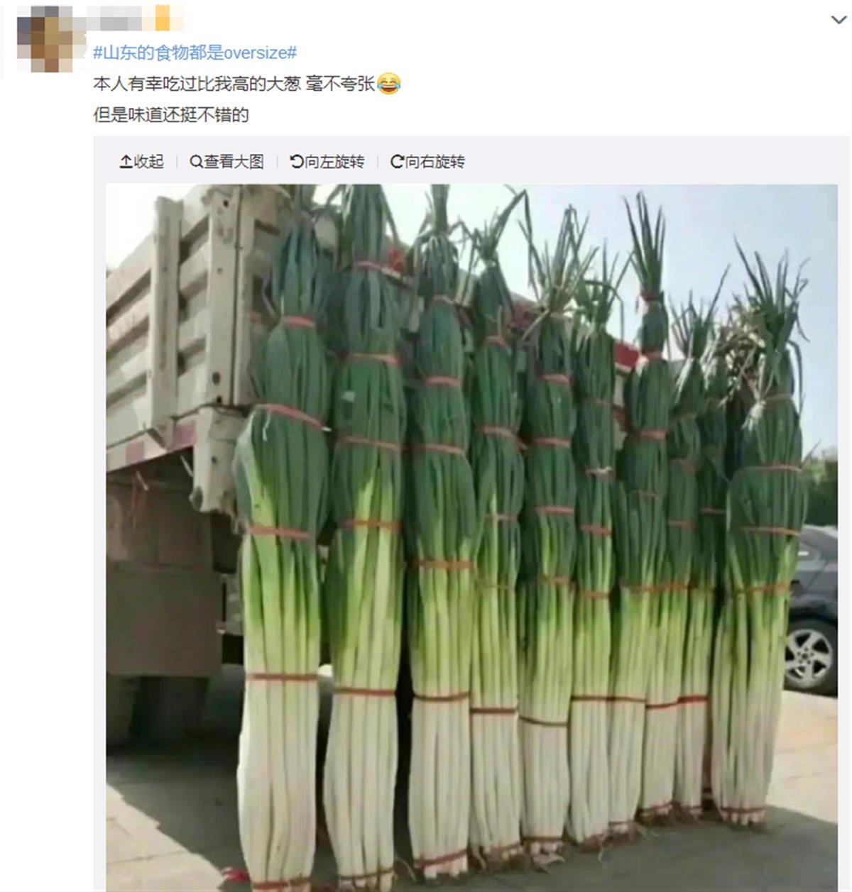 在网友热心的晒图之中,好客山东俨然变成了“浩克山东”,每一样食物都大得让人惊叹!有比人的头还大梨,跟小臂一样长的胡萝卜,盆一样大的面碗,一只手根本拿不住的烟台苹果,当然也少不了比人还要高的章丘大葱。据以往报道,每年都会举办的“中国·章丘大葱文化旅游节”上,185cm以下的葱,没有参赛资格,真的很难让人不感叹一声:“人不如葱”!