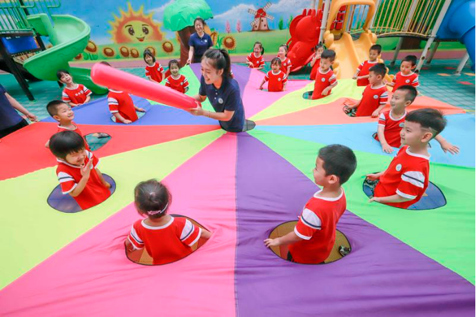 ▲2022年7月28日,河北省遵化市一所幼儿园的老师组织暑期托管班的孩子们做游戏。图/新华社 越上网越不爱生孩子?