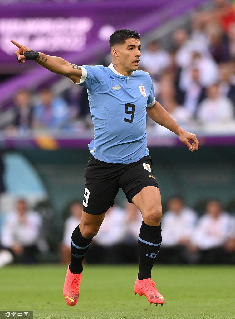 苏亚雷斯已经35岁了,此前三届世界杯他13次出场贡献了7球、4助攻,是乌拉圭绝对的大腿,如今却已然不堪重负。