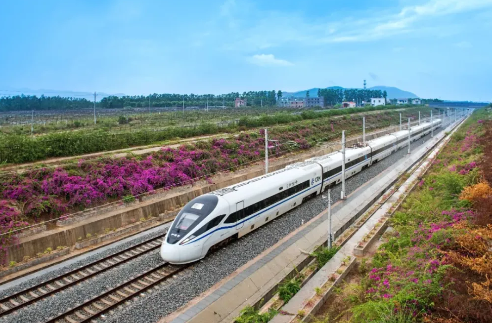 高铁的滚滚车轮,也辗画出一幅乡村振兴的胜景。长沙南、广州南等高铁站均设置有“山货”专柜,让特色农副产品借力铁路窗口从乡村走向了大都市;高铁串联下,原来的跨省游变成了1至3天的短线游,“说走就走”的幸福更触手可及;“高铁旅游联盟”推动高铁沿线旅游深度开发,拉动城市餐饮、住宿、购物等领域收入增长,让沿线城市的旅游产业也驶上高铁“快车道”……坐着京广高铁看中国,看“绿水青山就是金山银山”的理念映照在乡村发展的每一步里,从村民美起来的生活中,我们更能体味新时代中国发展的无尽美好。