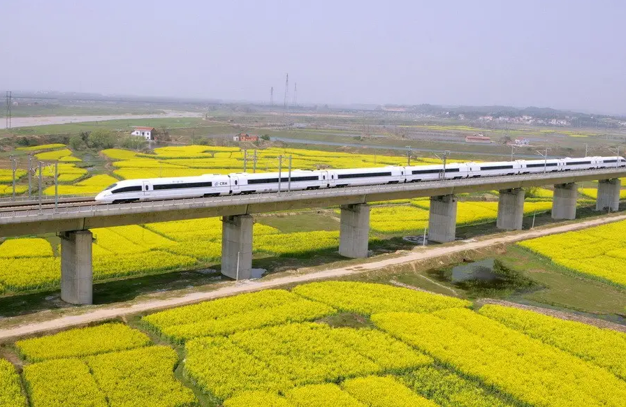 高铁线也是民生线。高铁线路的每一寸延伸,带来的不只是空间距离的改变,更重要的是其对经济的拉动作用。这条线路途经北京、石家庄、郑州、武汉、长沙、广州等地,以7小时38分钟的行程串起了一条经济大动脉。全线贯通运营近10年来,共运客约10亿人次,带动人流、物流、生产要素快速流转,让这条线路也成为了全国最繁忙的高铁线路之一。坐着京广高铁,看人来人往的客流,感受城市蓬勃发展的活力,这富起来、强起来的中国又怎可能不美?