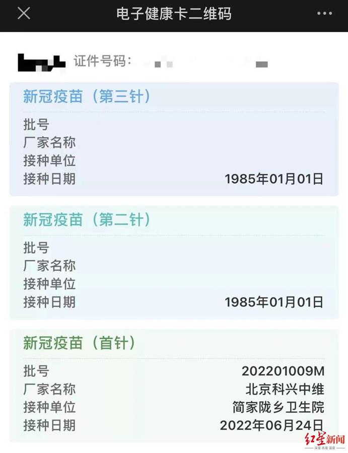 有一针没接种过的居民,却出现了接种记录;有只接种过二针的居民,第三针莫名其妙就有了……这到底是怎么回事?电子健康卡二维码显示,这些凭空出现的接种记录,疫苗批号、厂家名称、接种单位等,一应俱全,不像是假的。