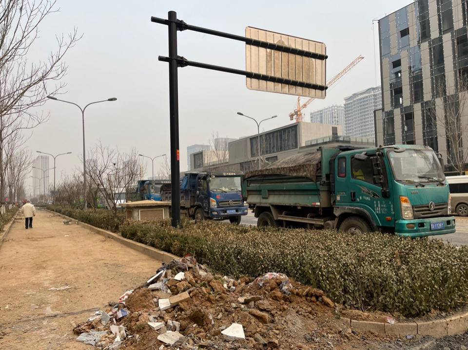 1月4日上午八点半,记者跟随壹粉共同进入鲁商悦府小区东区探访,现场依然是一副施工模样。在小区北门外,五六辆工程车拉着沥青在等待进场。