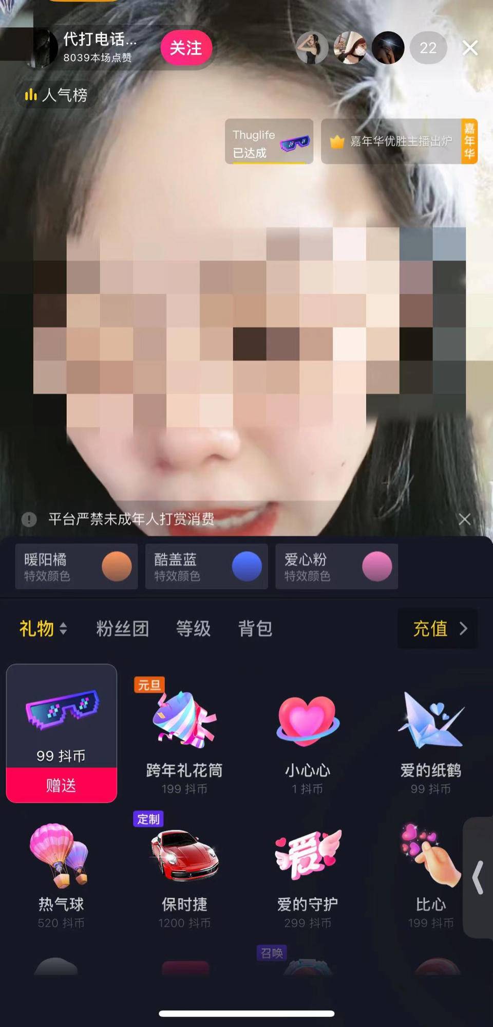 一位来自陕西的主播,粉丝不到300人,但直播间有上千人在线,一场直播点赞有5万次。她表示,“大家只需要给我点点关注,送一副墨镜就可以代打一次电话,想说的话给我留言或者私信就好。”