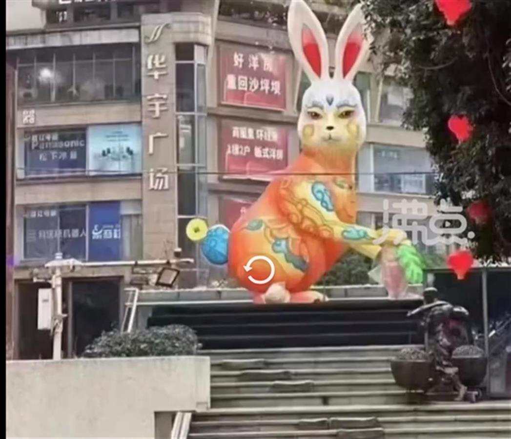 网友拍摄的巨型兔子灯饰(网络视频截图)