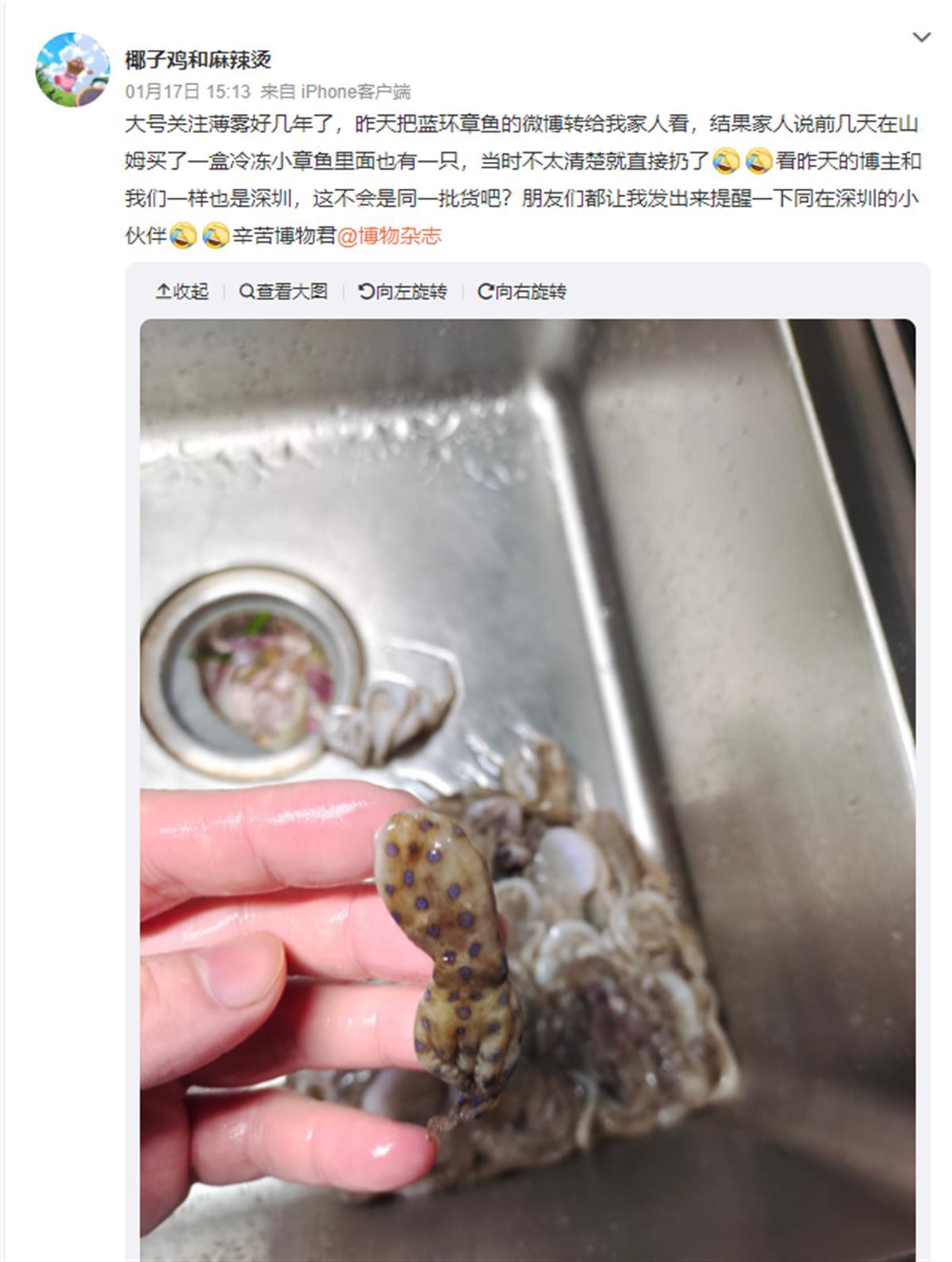 此前网友爆料在山姆买到了蓝环章鱼 (来源:微博)