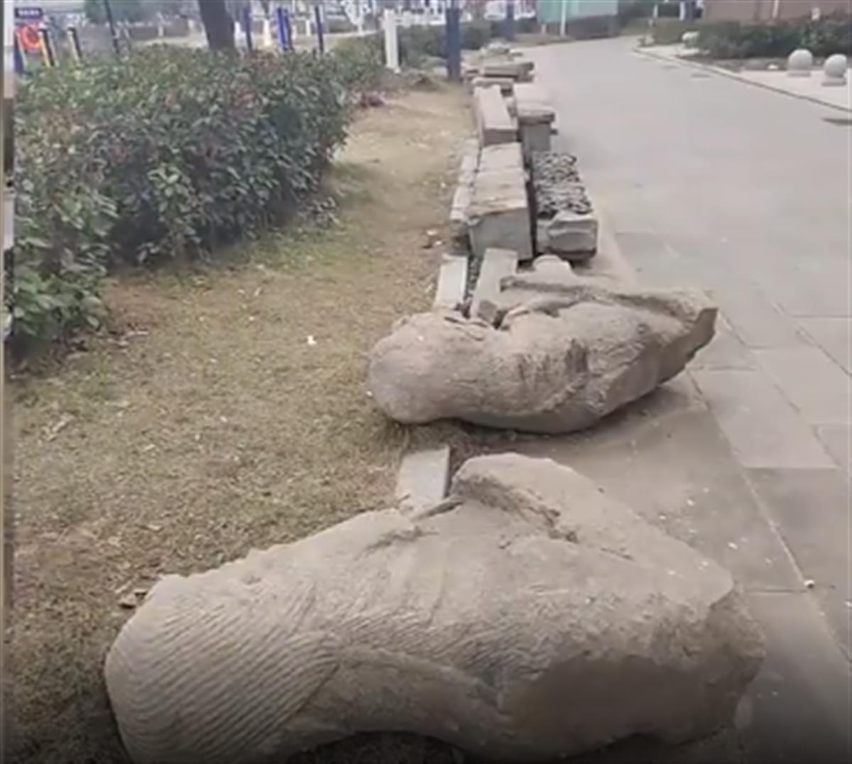 2月1日,江西省抚州市崇仁县博物馆外,一些疑似文物的石狮子、石柱被随意丢弃。有人称,这是对文物的不尊重。对此,崇仁县博物馆工作人员表示,博物馆门口放的石狮子是文物,其他的不是。博物馆仓库放不下这些东西,所以只能放外面。(据2月2日九派新闻)