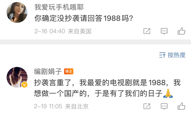 还有网友指出,该剧撞款多部爆剧,堪称“大乱炖”。人物设定是电视剧《父母爱情》和《人世间》的综合体,整个框架和韩剧《请回答1998》相似,编剧还借“喜爱”辩解,类似情况已经不是第一次了。