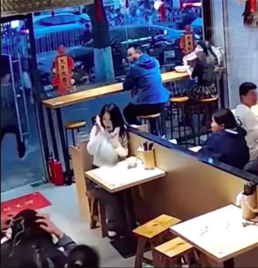 根据流传出来的视频画面,男子行为让人吃惊:在吃完面后,他端着面汤往女生方向走去,突然间将面汤向女生的头上扣了下去,随后立马夺门而出。
