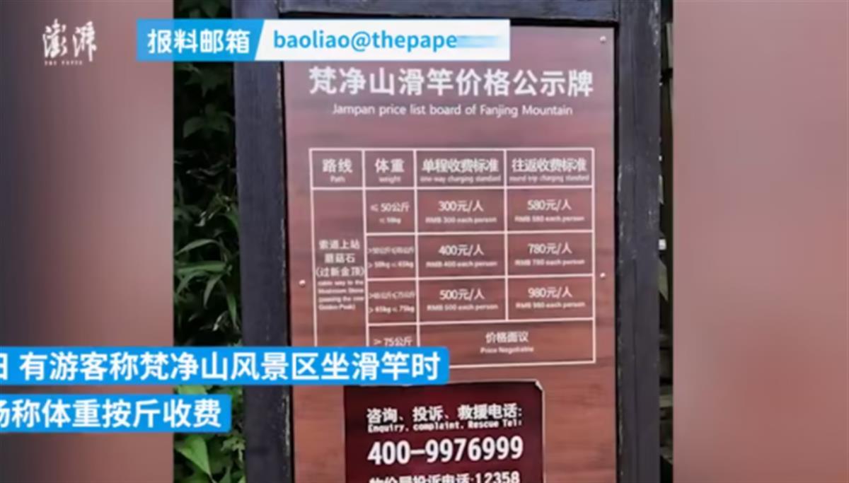 按道理,现场有价格公示牌,明码标价,没有强制消费,符合法律法规的要求,也就不存在问题。75公斤以上的人群价格面议,也说明了收费方式,就是双方协商为主,低了,抬滑杆的师傅不愿意;高了,游客觉得不划算,就看双方找到什么样的契合点。