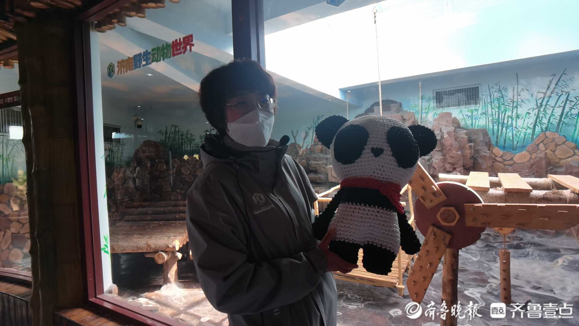 “有一年‘双十一’,我还给它们做了一个快递包裹和购物袋,是用麻袋一点点给它绣上缝上的。”该饲养员说,她现在特意给“二喜”编制了一个熊猫的玩偶,“感觉自己亲手做的这些东西,它能去玩,我就很有成就感。”