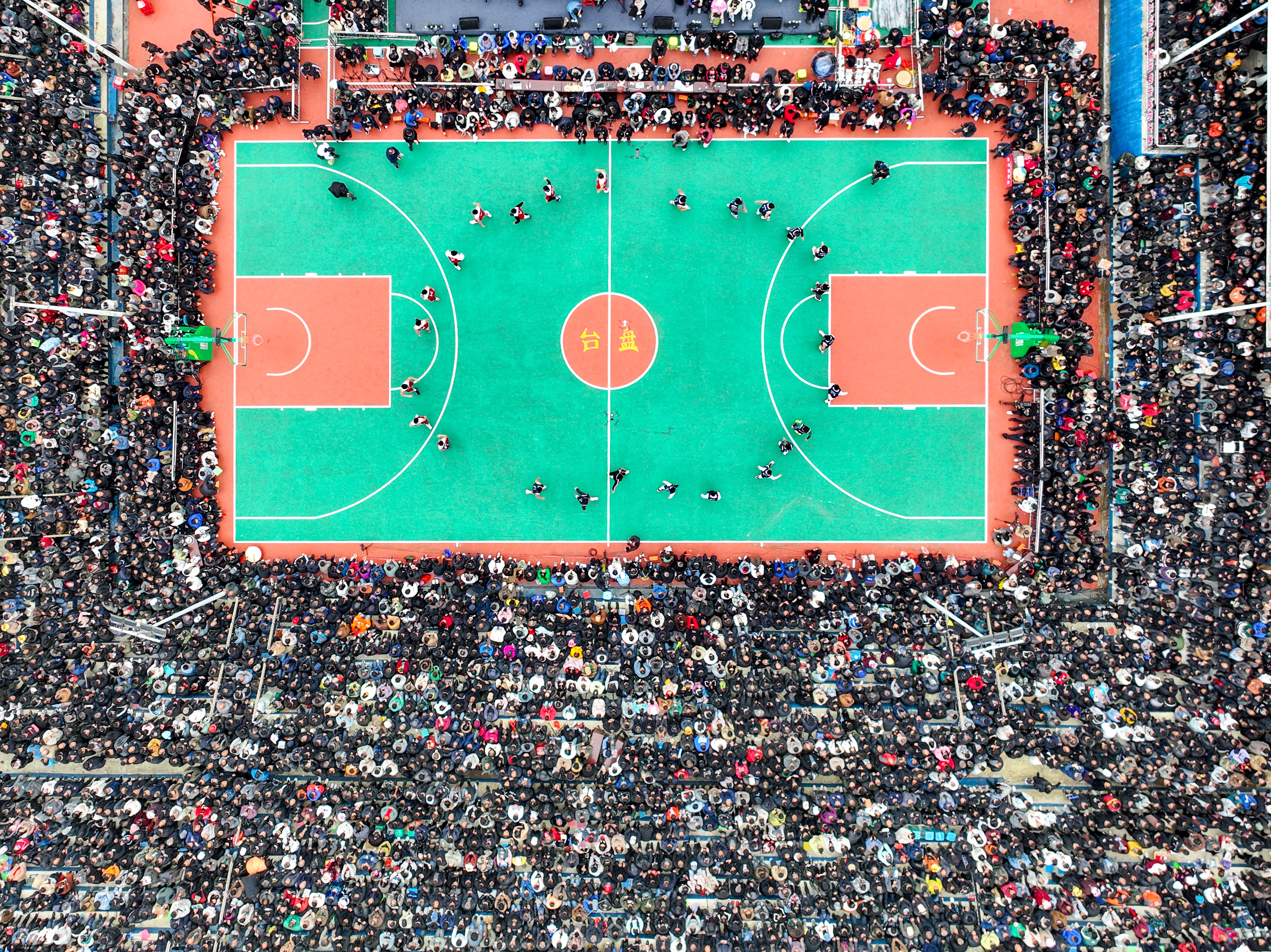 没有大牌球星,没有灯光绚丽的球馆,简简单单的场地,两只篮球架,场上球员挥汗如雨,乡亲们助威声震天响起。高大的看台早已容纳不下不远千里慕名而来的观众,人们甚至在场边架满人字梯,爬上梯子翘首以望,只为给场上奔跑的年轻人喝一声彩。